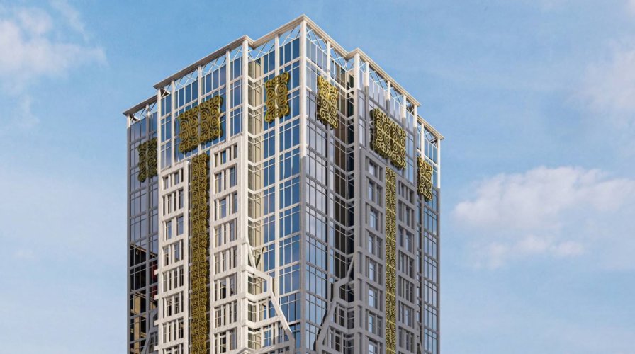 Даймохк выполнен в сочетании современной архитектуры и чеченского народного орнамента, что подчеркивается элементами дизайна и высококачественными материалами.