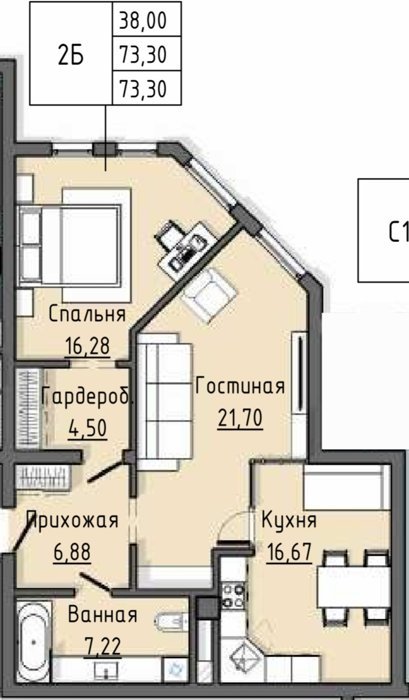 Площадь от 73.3 м2