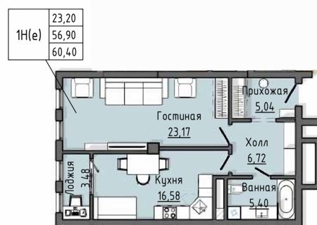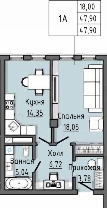 Площадь от 47.9 м2