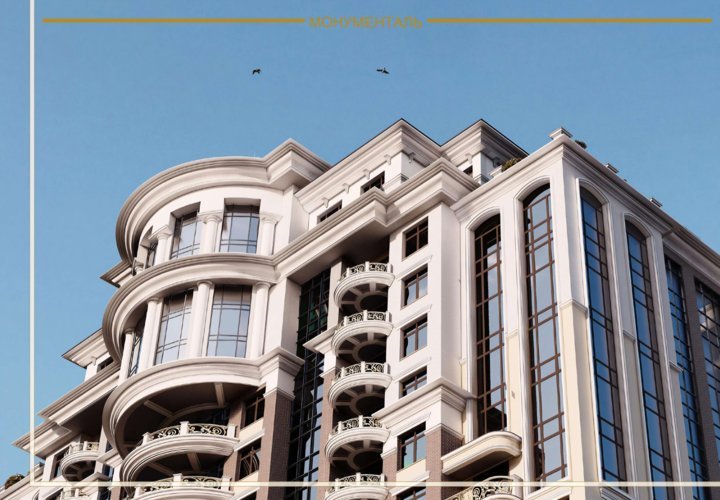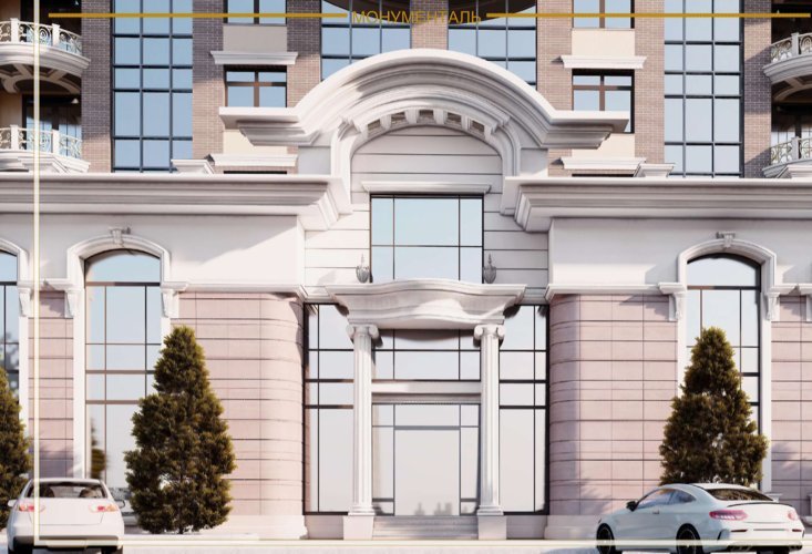 Воплощение элегантности и величия в неоклассическом стиле. Архитектурное оформление жилого дома "Монументаль" завораживает своей изысканной простотой и величием.