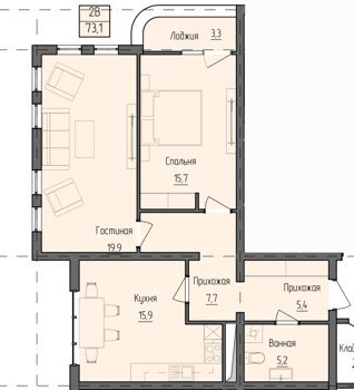 Площадь от 73.1 м2