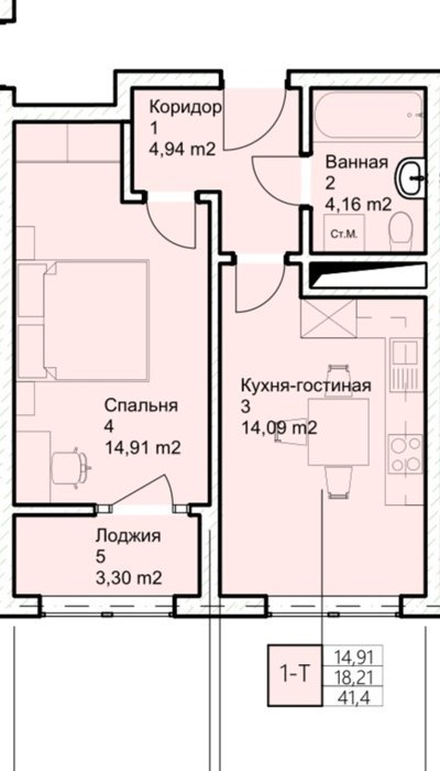 Площадь от 21 м2