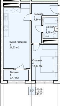Площадь от 37 м2
