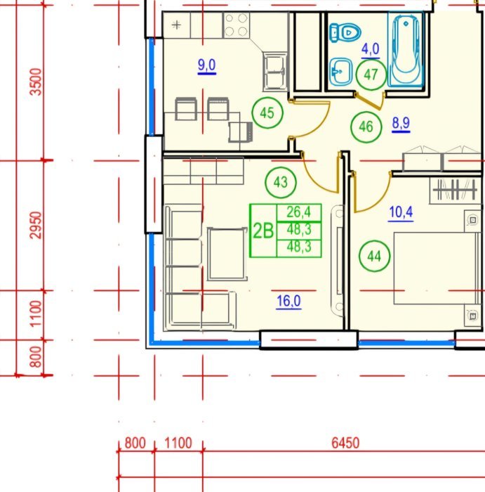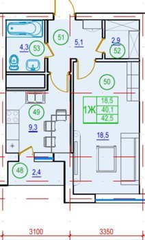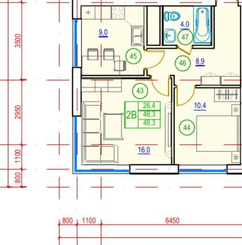 Планировки в ЖК Аристократ правильной формы от 40 до 48м². Балконы и большие панорамные окна дают насладиться всей красотой нового района.